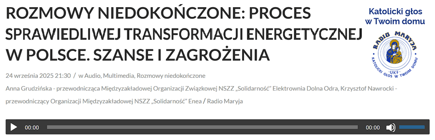 Wywiad z Przewodniczącą Anną Grudzińską i Krzysztofem Nawrockim z "Enea" w Radio Maryja