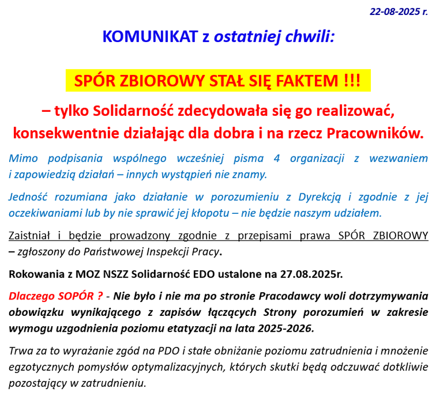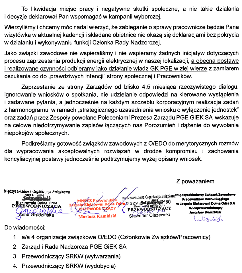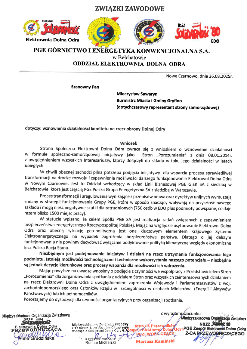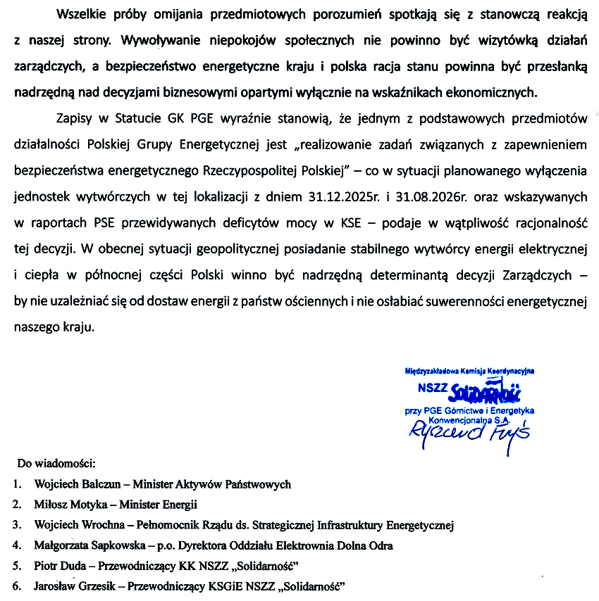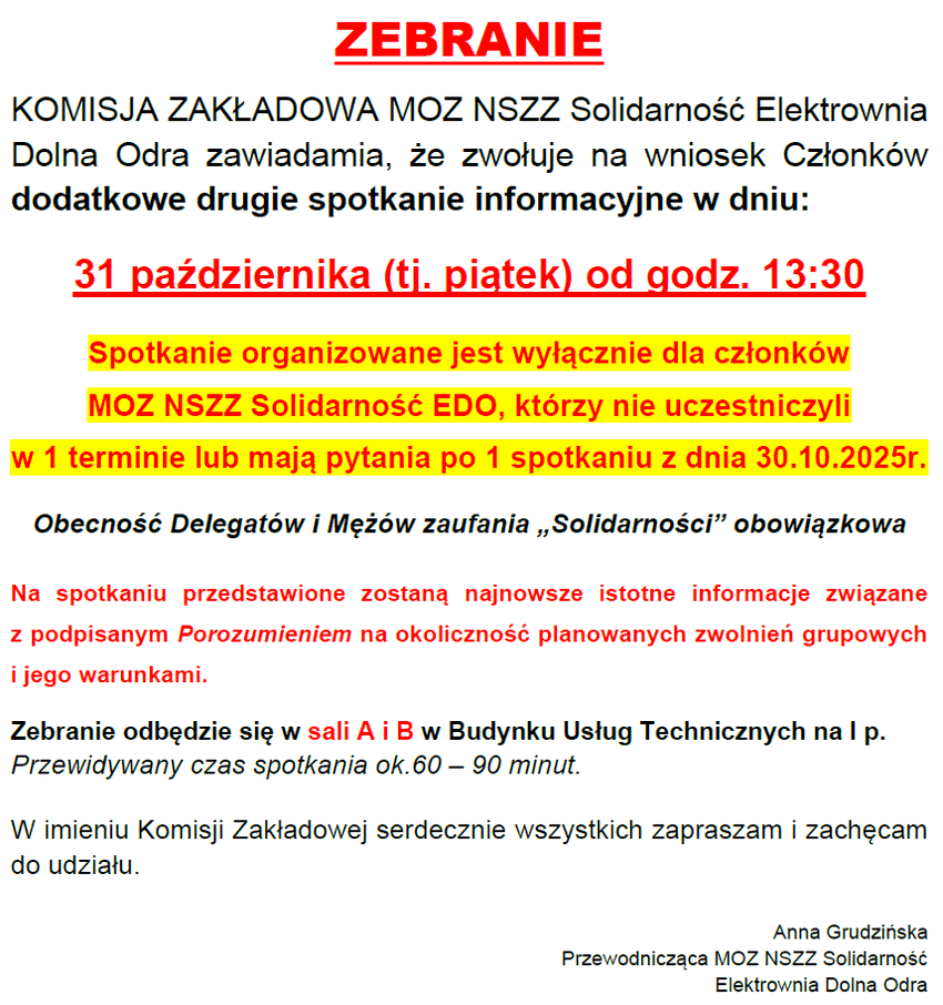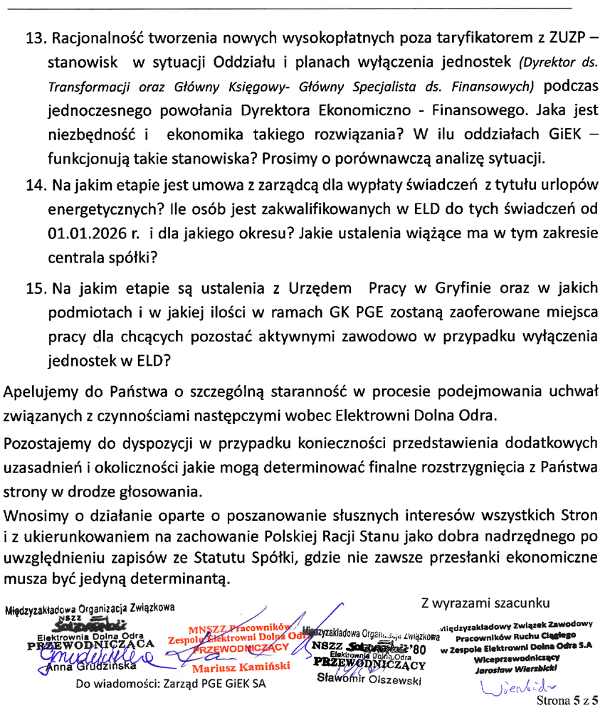 | Strona główna Komunikaty Statut Związku Skład Komisji Świadczenia statutowe Galeria zdjęć Historia Kontakt Telefon: 91 822 50 01 e-mail: solidarnosc.giekeld@gkpge.pl Adres: MOZ NSZZ Solidarność Elektrownia Dolna Odra 74-105 Nowe Czarnowo 76 Numer konta: 39 1240 1864 1111 0000 2207 1497 Bank PEKAO VII O/Szczecin   | ||